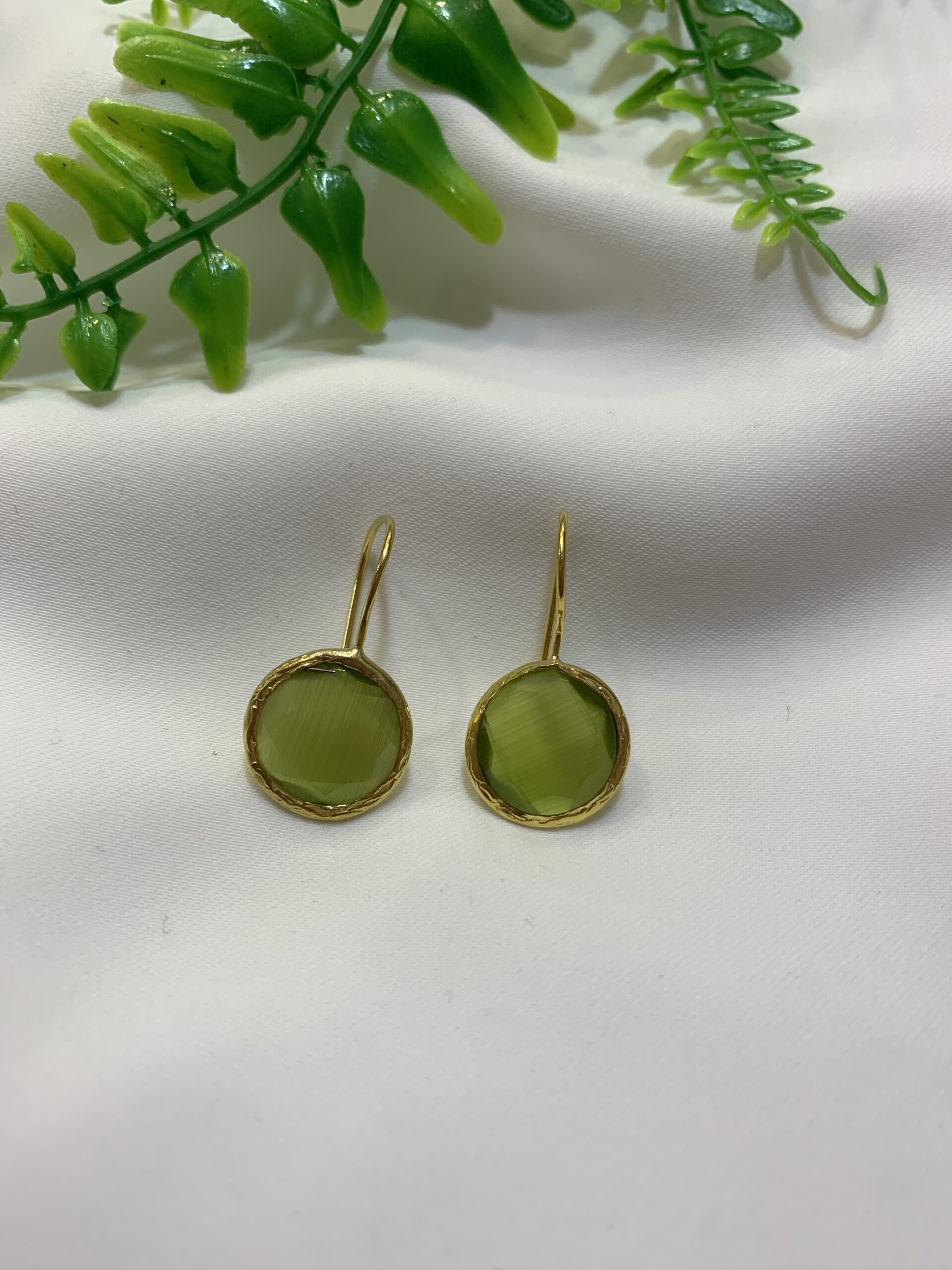 calidad excluviaPendientes dorados con una piedra verde en tono pistacho