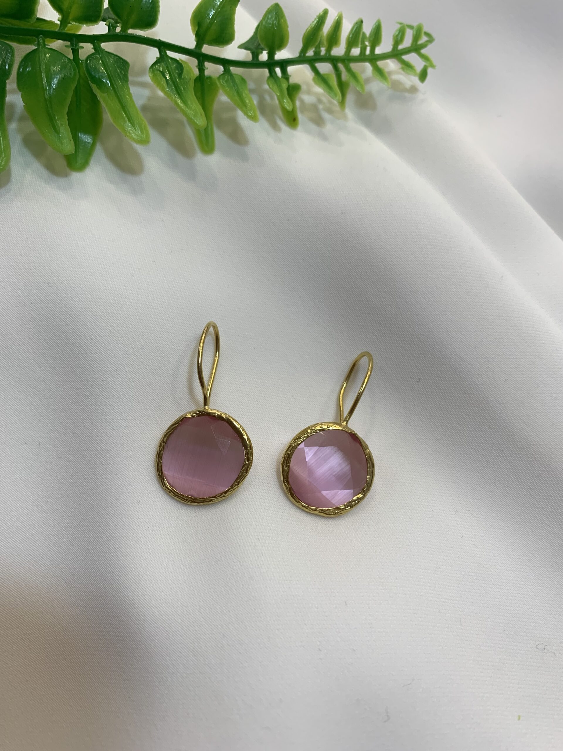 calidad excluviaPendientes dorados con una piedra en rosa fuerte
